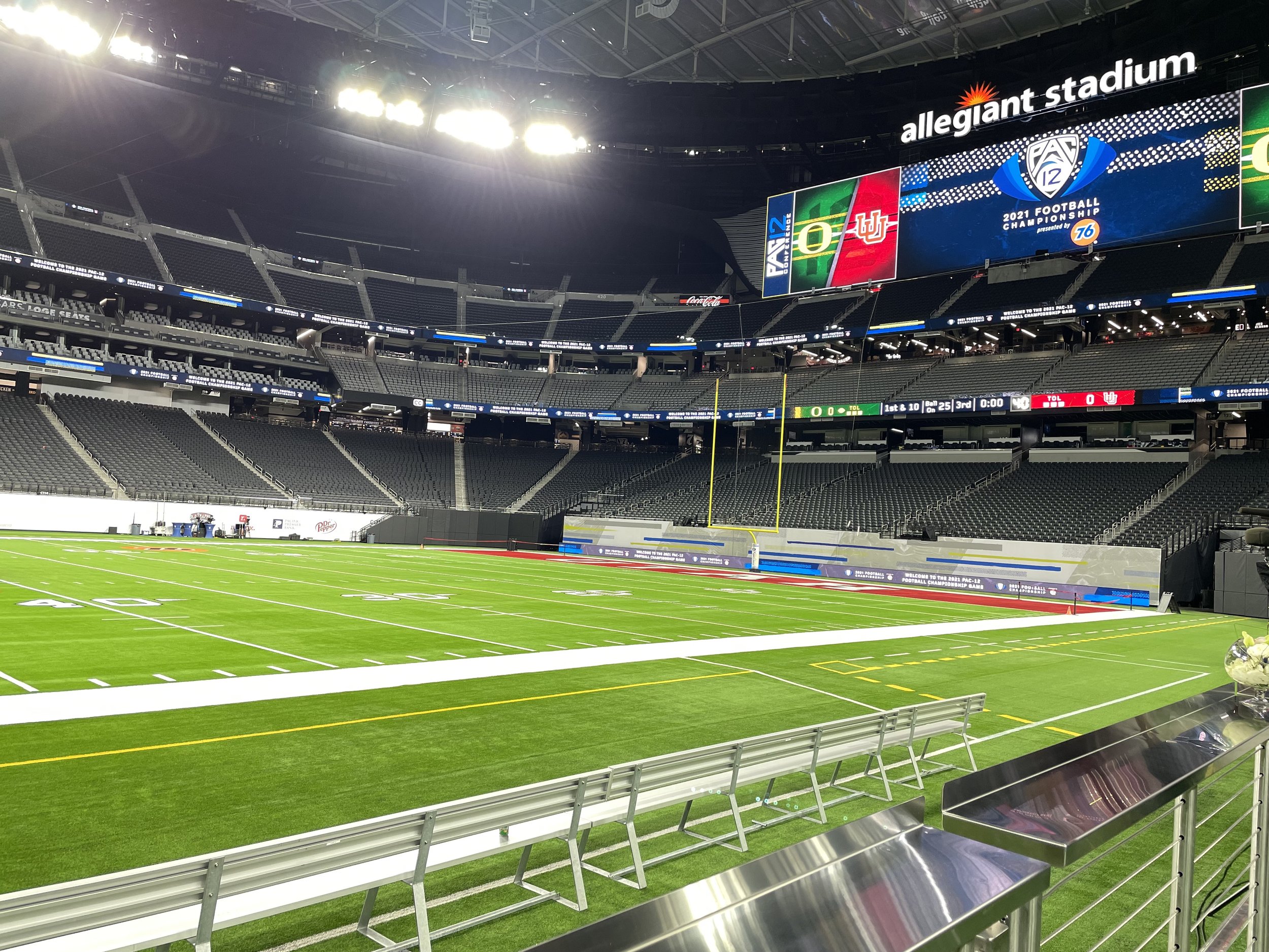 Personalizing plastic fanny packs at PAC-12 athletic conference at the Allegiant Stadium, Las Vegas